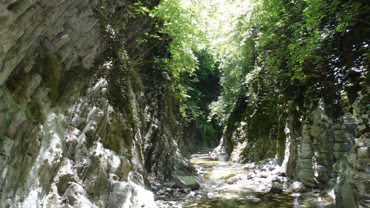 Узкий глубокий каньон реки Куапсе словно рассекает горы могучим шрамом, уходя в недра земли. Его отвесные стены, сложенные из слоистых скальных пород, взмывают на головокружительную высоту, смыкаясь где‑то далеко вверху в узкую полоску неба. По дну Мамедова ущелья стремительно несётся горная река Куапсе — бурлящий поток с ледяной прозрачной водой. Она то сжимается между тесных каменных стен, ускоряя бег, то расширяется в небольшие глубокие заводи, где вода замедляется, образуя зеркальные глади. На поворотах река пенится, перекатывается через валуны, издаёт неумолчный гул, который эхом отражается от каменных стен.