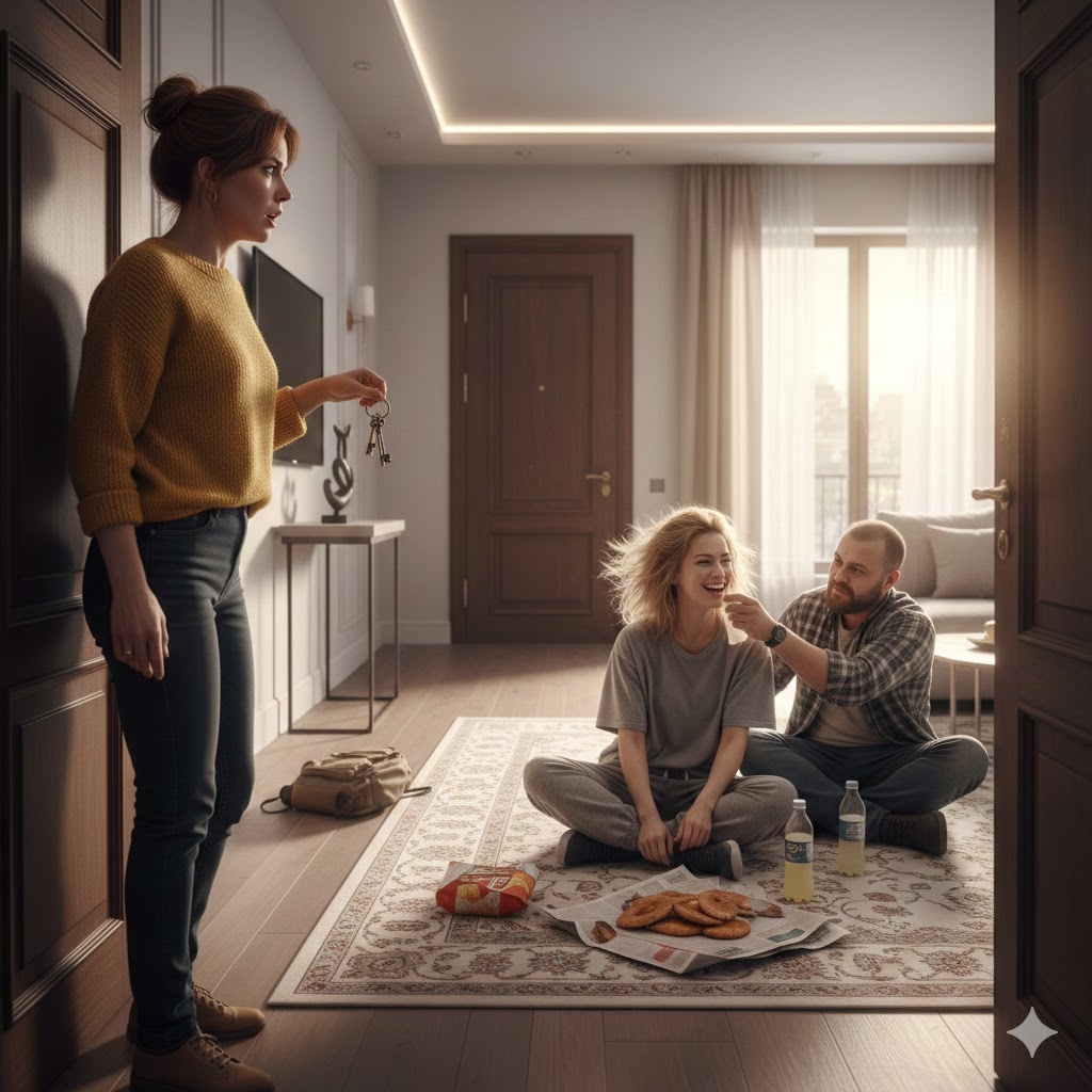 Прямо в коридоре, на изящной банкетке, стояли мужские ботинки. Не туфли Вадима — тот предпочитал строгую классику — а поношенные, пыльные кроссовки, которые ну никак не вписывались в стерильный интерьер. Рядом на полу валялся чей-то чужой, помятый рюкзак. Но не это заставило Соню замереть, не смея дышать.