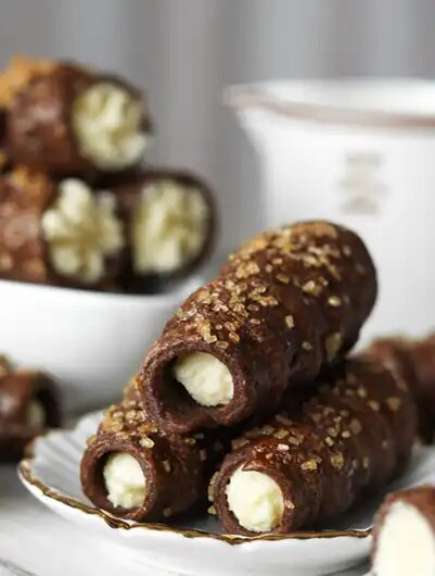 Хрустящие шоколадные трубки, наполненные заварным кремом. Эти трубочки отлично дополнят как семейное чаепитие, так и любой праздничный стол. Обязательно попробуйте их приготовить. Готовятся они несложно. Вот рецепт трубочек с кремом. Продукты необходимые для приготовления: