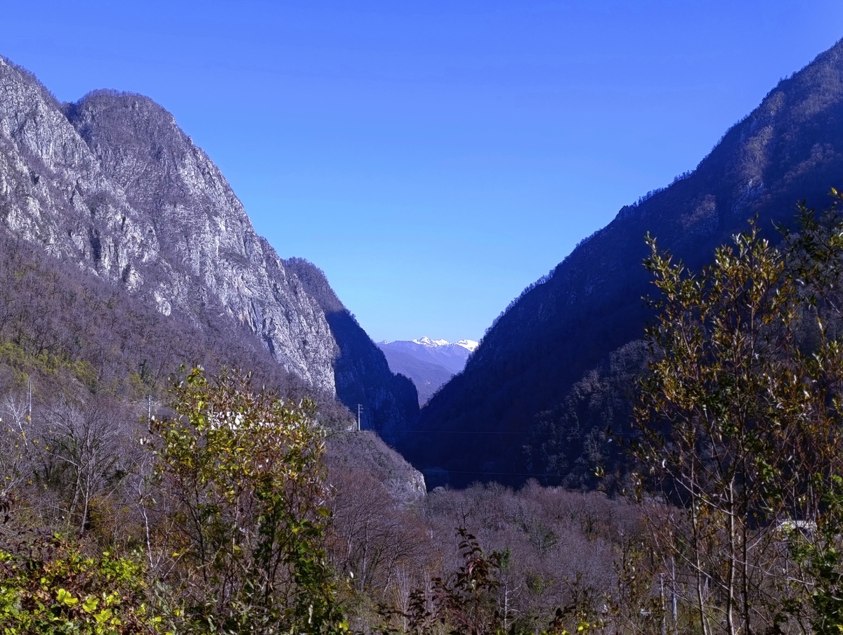 Ущелье Ах-цу находится на одном из участков долины реки Мзымта и речки Ахцу (правый приток Мзымты). Мы доехали по новой дороге (есть еще старая дорога) до смотровой площадки,откуда открывается вид на глубокое ущелье и величественные горы вокруг. Дух захватывает от увиденного, и это было только начало нашего путешествия.