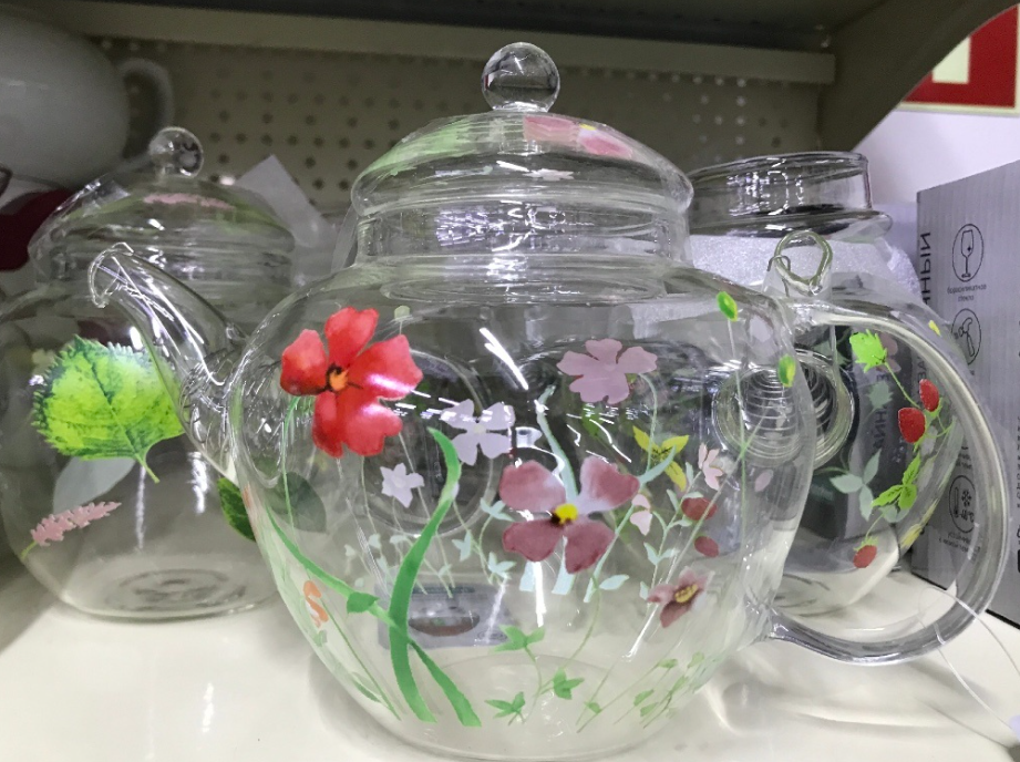 Начну сегодня с посуды, потому что именно там я задержалась дольше всего. В отделе новинок увидела заварочный чайник из боросиликатного стекла с очень нежным, аккуратным декором. Смотрится легко, воздушно, прямо хочется налить в него ароматный чай и устроить уютный вечер. В комплекте идёт фильтр из нержавеющей стали — удобно, ничего дополнительно покупать не нужно. Объём 680 мл, производство Китай, цена 449 рублей.