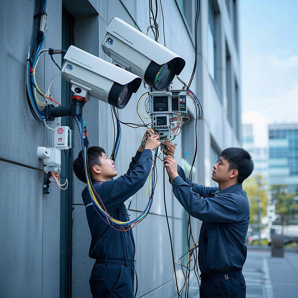 - Обследование объекта и замер. - Выбор места, расчёт углов обзора и освещения. - Подготовка опоры: установка кронштейна/столба, бетонирование при необходимости. - Прокладка кабеля: внутри фасада, в лотках, в гофре или в траншее. - Подключение камер к PoE-коммутатору/NVR, тестирование. - Защита от влаги, маркировка и сдача работ.