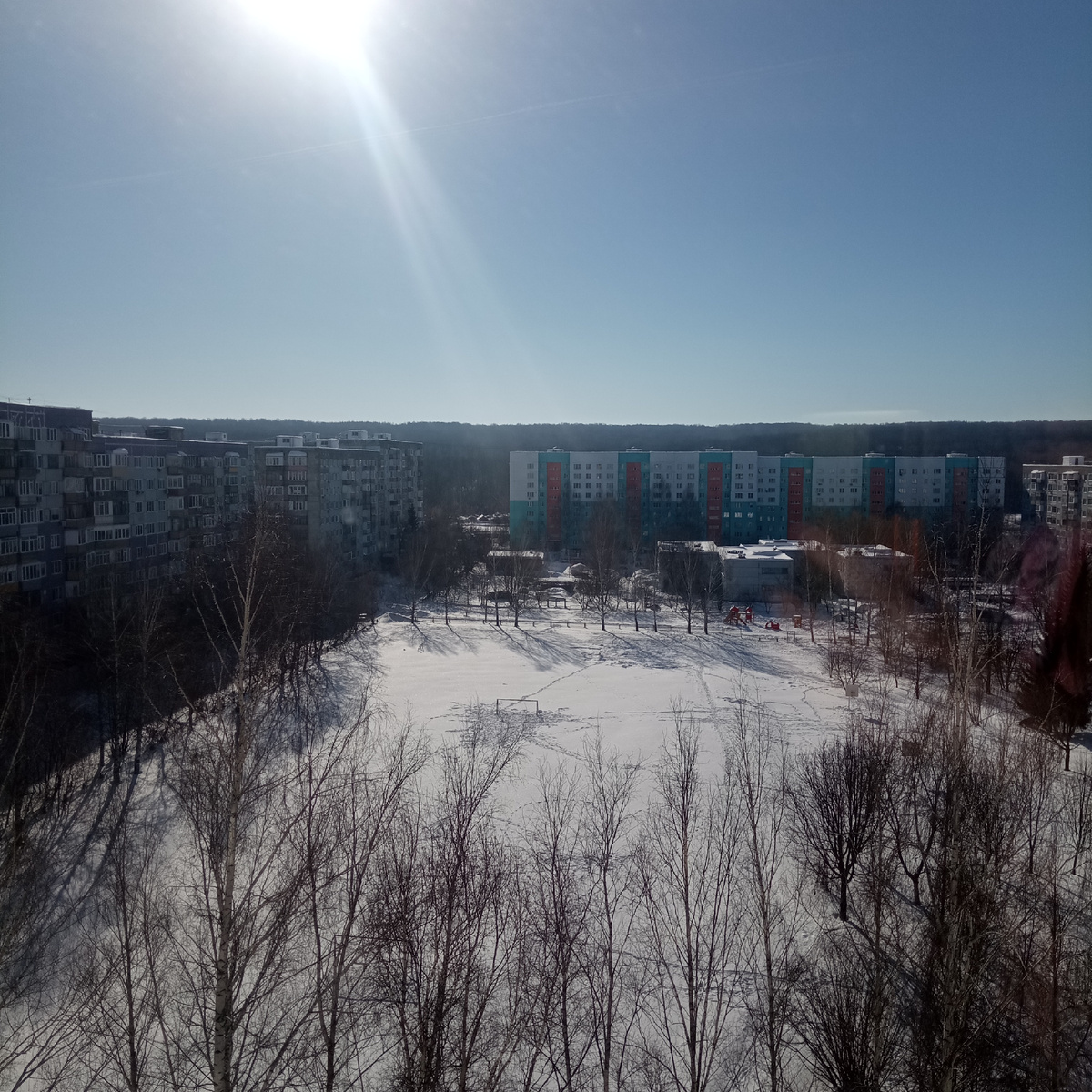 Проснулась, утро яркое, солнечное. Градусы на термометре показывают -12 С. Вышла на лоджию, небо голубое, солнце яркое. Живи и радуйся!