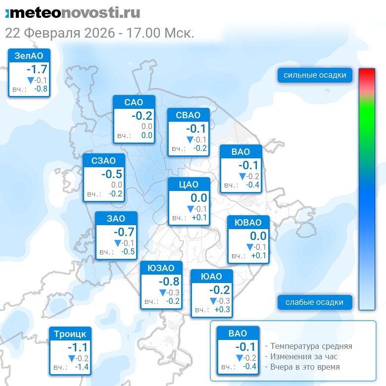 В 17:00 в Москве было от -2°C до +0.4°C, средняя температура -0.4°C #погода #Москва #зима #температура #22февраля #воскресенье