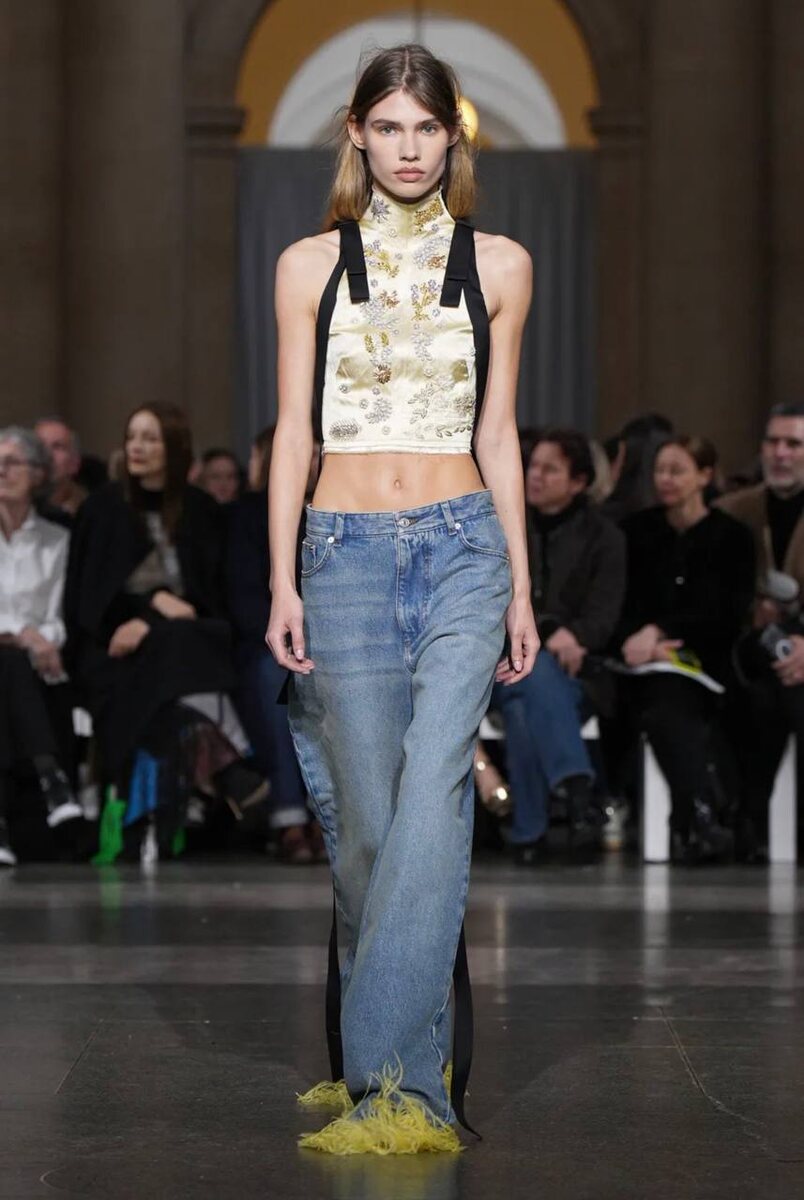 Очередное подтверждение — коллекция Erdem, показ которой прошел на Неделе моды в Лондоне. В капсуле мы заметили джинсы, пальто, обувь и сумки с таким декором.