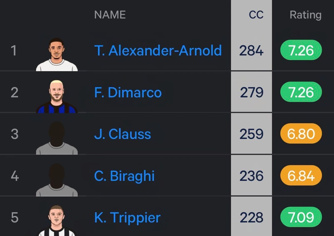 Лидеры по количеству ключевых передач среди выступающих в топ-5 чемпионатах Европы защитников, начиная с сезона-21/22