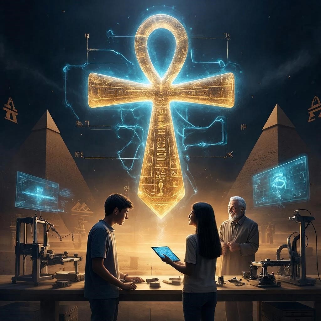Представьте: вы смотрите фильм про Древний Египет. Фараон, жрецы, пирамиды... и, конечно, золотой крест с петлей наверху — Анх. Обычно нам говорят, что это символ вечной жизни, ключ к загробному миру или атрибут богов. Звучит красиво, но... немного скучно, правда? Очередная метафора. А что, если это не просто метафора? Что, если это чертеж? Что, если десятки тысяч лет назад кто-то пытался зашифровать в этой изящной форме не магическое заклинание, а точную инженерную схему работающего устройства? Давайте на время забудем о мистике и включим режим "Юный техник" или "Физик-экспериментатор". Добро пожаловать в мир, где магия — это просто забытая физика. Обычный взгляд: "Анх — это ключ к вратам рая". Наш взгляд: "Анх — это схема резонансного преобразователя энергии". Звучит как бред сумасшедшего ученого? Возможно. Но давайте разберем эту "схему" как инженеры. В иероглифе зашифрована сложная структура. Мы привыкли, что энергия течет по проводам (постоянный ток) или болтается туда-сюда (пере