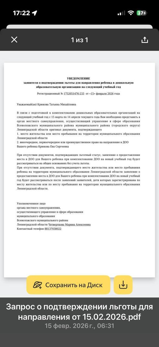 Мне на почту пришло уведомление что мне надо предоставить документы с пропиской в д/с. Подскажите, им же можно куда то на почту отправить скан? Из предложки 🌇 Жизнь в Кудрово ( ВК | Max ) Есть новости? Пишите сюда.