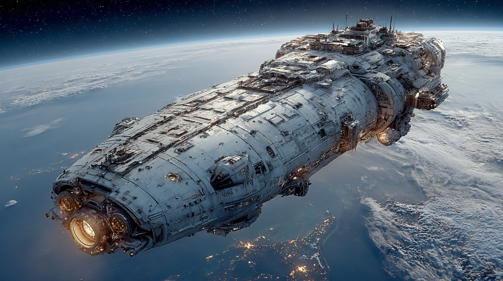 Представьте: огромный космический корабль, похожий на плавучий город, медленно уходит от Земли. За бортом — чёрное небо, усыпанное далёкими звёздами. Внутри — тысячи людей, живущих, растущих, рождающих детей.