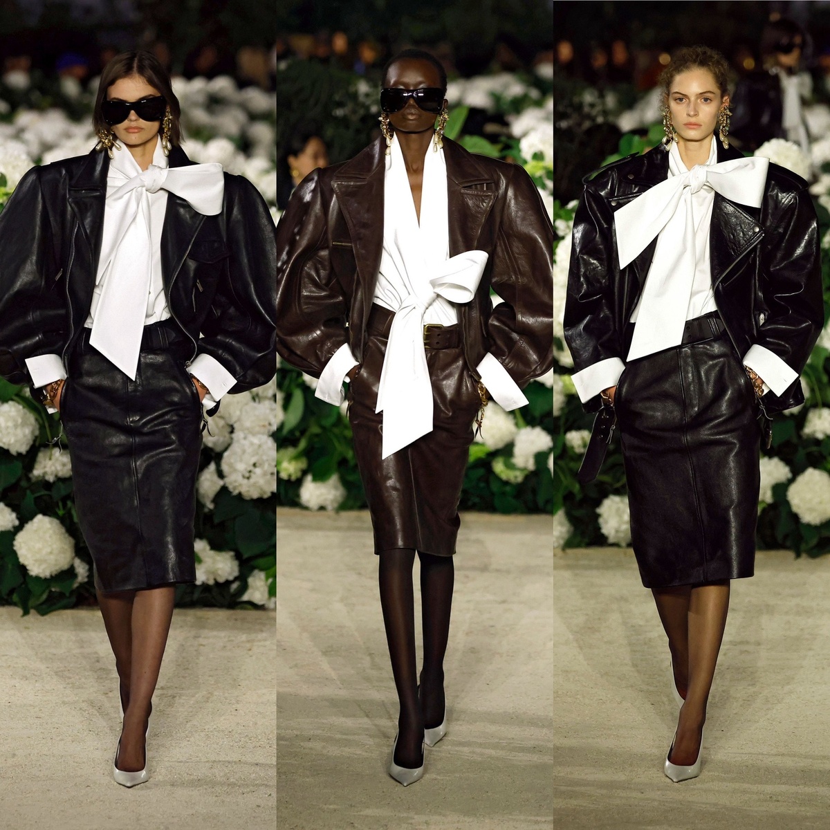 Аксессуары завершали образы: элегантные каблуки, подчёркивающие каждый шаг, гладкие волосы, убранные так просто, что это выглядело почти дерзко, минимальный макияж — намёк, а не утверждение. Женщина Saint Laurent представала перед зрителем одновременно властной и неуловимой, как тень на стене, как шёпот на ветру.