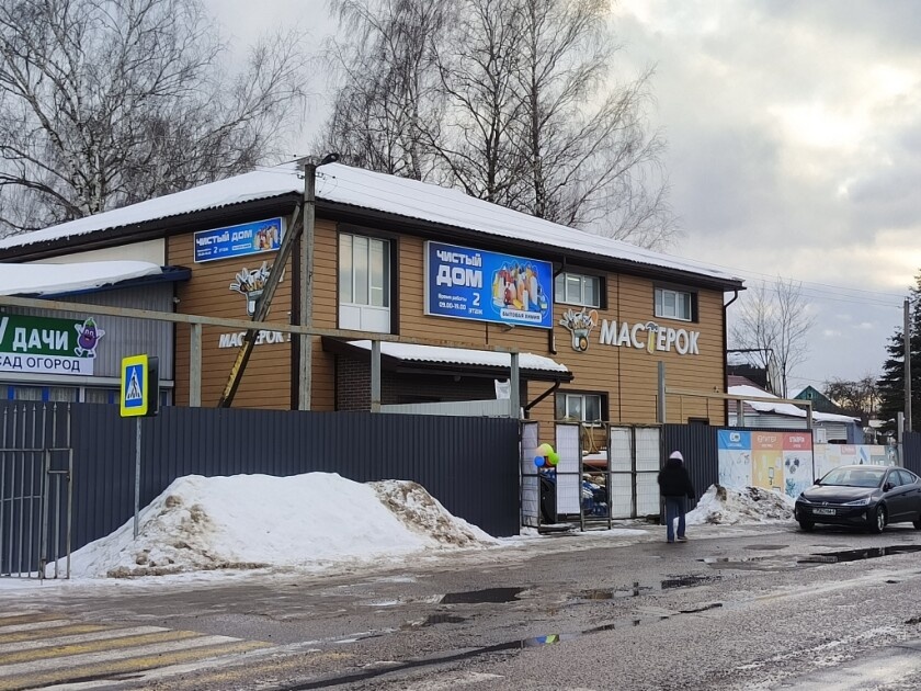 Дверь слева - магазин "Чистый дом", справа - "Мастерок":