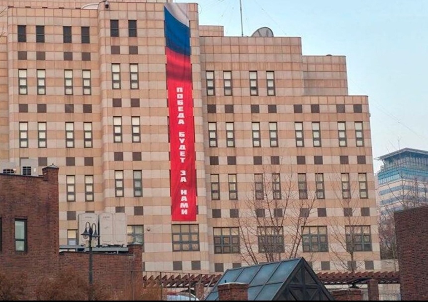 Российское посольство, в свою очередь, в комментарии для «Известий» дало понять, что не видит оснований для экстренного демонтажа. Дипломаты отметили, что баннер был вывешен в связи с праздничными датами и по техническим причинам не рассчитан на долговременную эксплуатацию, однако его уберут лишь после завершения праздничных мероприятий .