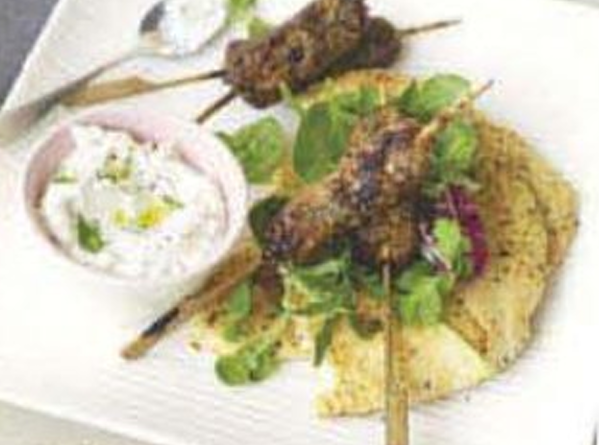 Время приготовления — 15 минут. 4 порции. Ингредиенты: 1. Нагрейте духовку до 220 градусов. В среднего размера миске смешайте фарш, лук, пасту карри и большую часть кинзы, добавьте немного специй. Сформируйте из фарша кебабы, нанизайте их на шпажки и разложите на противне. 2. Готовьте 15-20 минут, пока полностью не приготовятся. Смешайте йогурт, мяту и чеснок. Разогрейте лепёшки. Подавайте кебабы с салатной смесью, оставшейся кинзой и йогуртовой смесью. В одной порции: 465 килокалорий, 31 грамм белка, 36 граммов углеводов, 23 грамма жира, 10 граммов насыщенных жиров, 2 грамма клетчатки. 7 граммов сахара. 1.75 грамма соли.