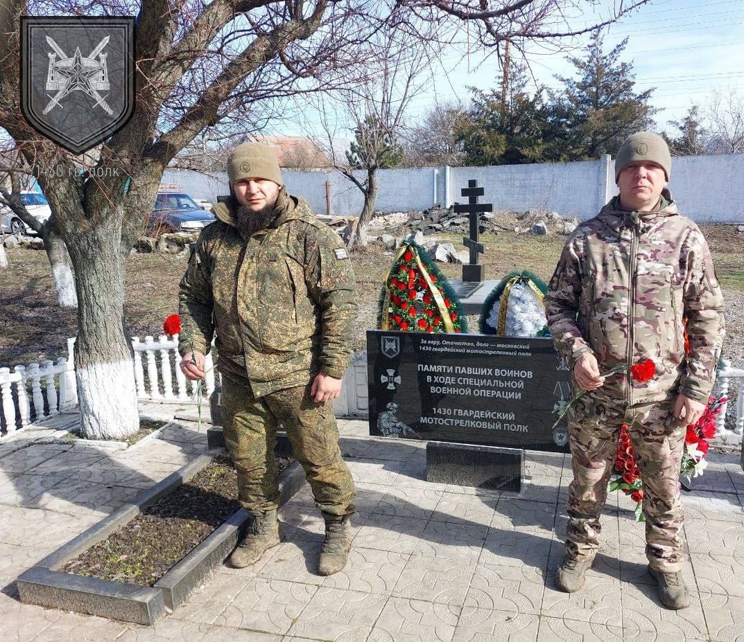 В канун Дня защитника Отечества бойцы 1 батальона 1430 гвардейского полка возложили цветы к мемориалу в Свято-Амвросиевском мужском