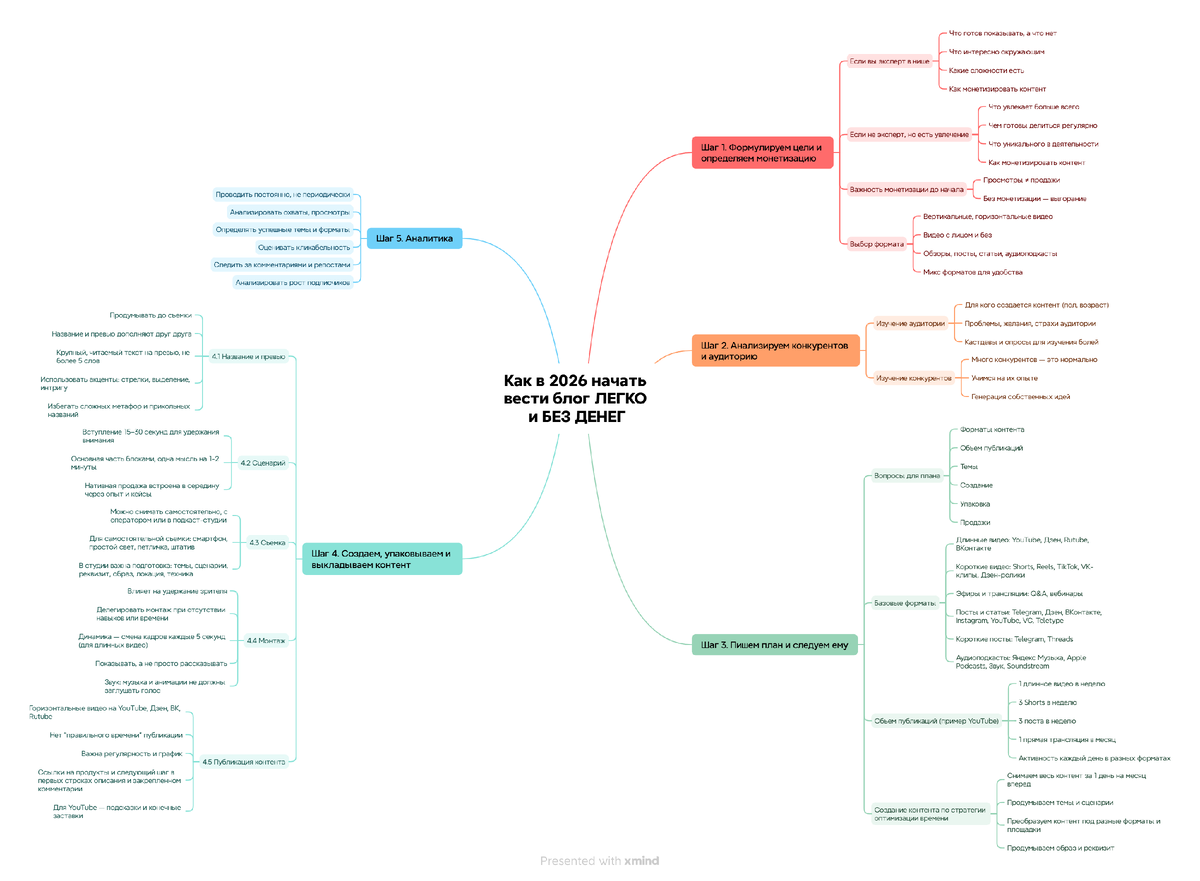 Давайте разберем пошаговый план, как начать вести блог. Я подготовила майнд-карту для вас, где всё подробно расписала.