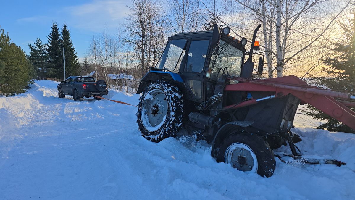 Сначала Артём пытался вытащить его пикапом, но не получалось, слишком скользко.