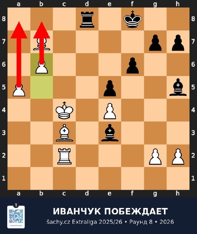 ! Василий Иванчук — легенда, которой не нужны представления. В 57 лет он продолжает играть на высшем уровне и сегодня в чешской Экстралиге показал мастер-класс позиционного эндшпиля. 🏆 šachy Extraliga 2025/26, Раунд 8 ⚪ Иванчук (2605) — Климковски (2532) 📋 Индийская защита | 1-0 Ферзи ушли с доски уже на 9-м ходу, но Иванчук доказал, что ему не нужны тяжёлые фигуры. Его знаменитый 17.Кре2! — марш короля в центр — задал тон всей партии. Чёрные допустили ключевую неточность 23...Крf8?!, а затем решающую ошибку 29...e5? (надо было Сd1). После этого два слона Иванчука и проходные пешки a5+b6 превратили позицию в безнадёжную. Финальная картинка — шедевр: слоны контролируют всю доску, связанные проходные неудержимы. Класс! 🔗 Разбор с комментариями: lichess.org/study/K3IGgk2c/qECkfCIt @CHESSANDLESSONS