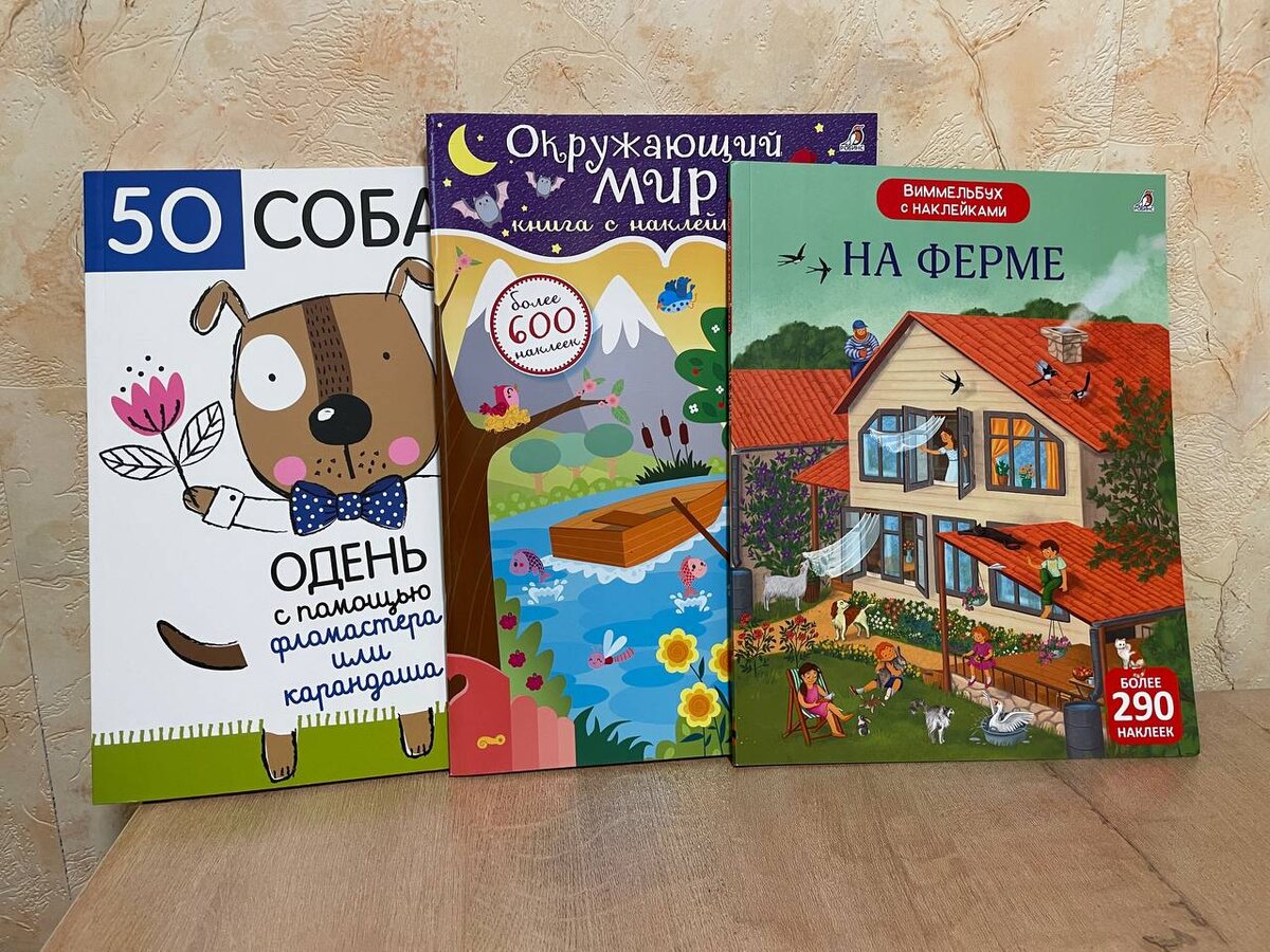 Я спасаюсь «тихими» занятиями — наклейками и раскрасками. В этот раз нас выручает издательство Робинс: Делюсь тремя фаворитами, которые реально работают, когда нужен часик спокойствия и пользы. 1. Книга-раскраска «50 собак. Одень с помощью фломастера» — это маленький модный показ для четвероногих героев. Берём цветные карандаши или фломастеры и придумываем каждому псу образ, заодно ребёнок знакомится с профессиями. Отлично тренирует усидчивость, мелкую моторику и чувство стиля. 2. Виммельбух с наклейками «На ферме» Тут сразу 13 фонов — целая жизнь на ферме: семья, огород, сад, техника и, конечно, животные. В комплекте более 290 наклеек, так что задач хватит надолго: заселить двор, собрать урожай, помочь с делами по хозяйству. Иллюстрации — отдельное удовольствие:добрые, хочется рассматривать вместе с ребенком. 3. Большая книга многоразовых наклеек «Окружающий мир» Внутри 12 пейзажей — разные времена года и уголки Земли — и более 600 многоразовых наклеек. Можно бесконечно перестраив