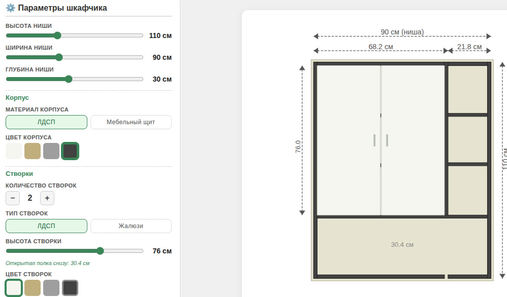 Сейчас снегопад, и я не ездил на монтажи. Пока сидел дома, пришла в голову сделать конфигуратор для клиентов, чтобы могли скомпоновать для себя конфигурацию шкафчика, выбрать материал, и посмотреть сразу комментарии по выбранным материалам и понять, что по стоимости. Еще в работе. Что скажете? Если бы вы заказывали подобный шкафчик, то повлияло бы на ваше решение наличие такой возможности, поиграться и выбрать конфигурацию? С телефона в принципе, тоже можно, хотя не так удобно. Вот ссылка - https://theeye1980.github.io/shfkafconfig/main3.html