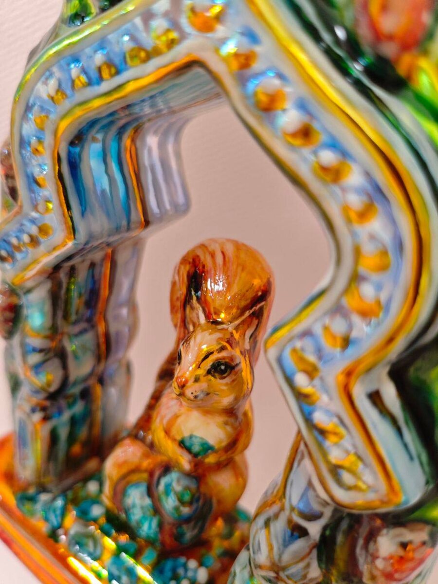 Словно воздух наполняется светом, а из глубины памяти поднимается старая добрая сказка. Перед нами — белочка под аркой, созданная художницей Оксаной Буренковой из Тулы. И это уже не просто роспись — это ожившая лесная история. Арка словно вырезана из изумрудного леса и янтарного солнца. 🌿✨ Густая зелень хвои переплетается с тёплым золотистым светом, голубые вставки мерцают, будто небесные осколки упали в ветви. Золото не ослепляет — оно светится мягко, как вечерний луч, скользящий по резьбе старинного терема. В этой работе слышится отголосок былинного мира Виктора Васнецова— та же сказочная архитектура, та же торжественная тишина, в которой живёт образ. Но у Оксаны всё становится прозрачнее и светлее: будто древняя сказка прошла через стекло и зазвенела хрустально. 🎨 Цвета здесь не спорят — они шепчутся: 💚 изумруд даёт глубину леса, 🧡 янтарь хранит тепло солнца, 💙 небесный голубой открывает простор, ✨ а золото связывает всё в единое дыхание света. А сама белочка… 🐿 Она словн