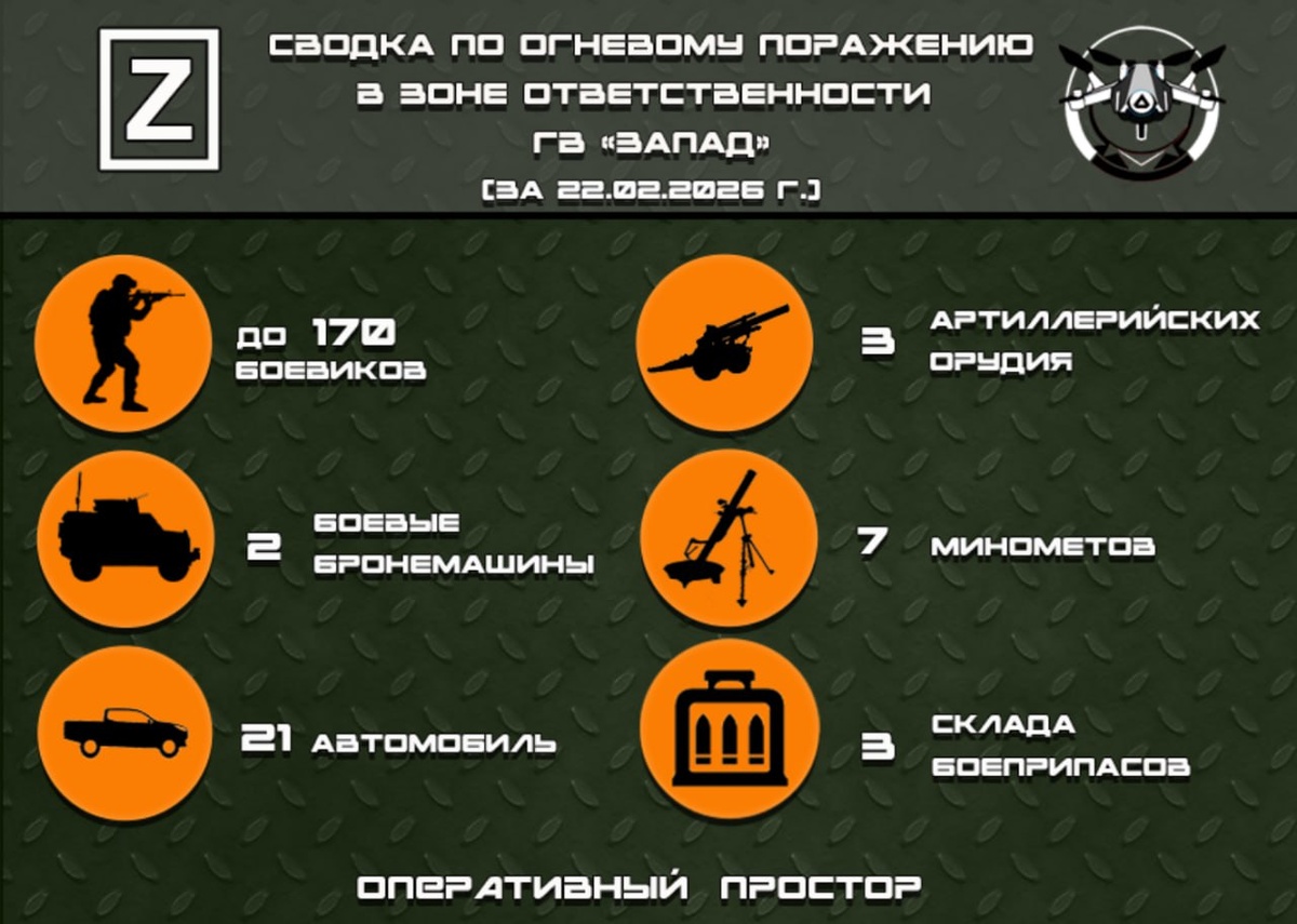 Сводка по огневому поражению в зоне ответственности ГВ «Запад» за 22.02.2026 г
