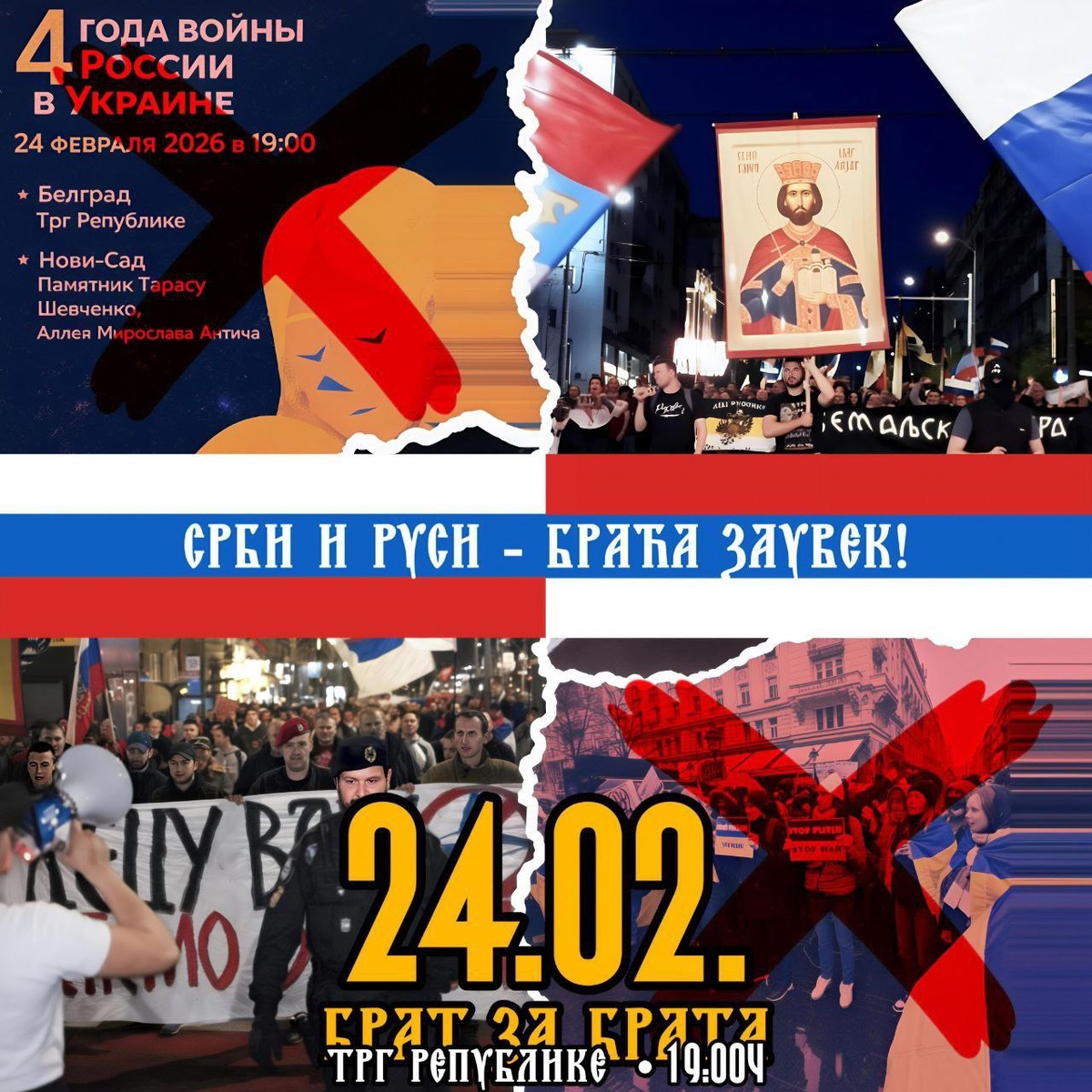 центр Белграда 24 февраля и поддержать Россию Ребята призывают всех взять флаги Сербии и России, прийти и поддержать Россию, русский народ и СВО, показав тем самым мнение большинства сербов. Данный митинг - ответ на митинг украинского посольства в Белграде, их «беженцев», российских релокантов и сербских либералов, сидящих на зарплате у западных посольств и НКО. Удивительно, что их митинг «совпал» с назначением нового украинского посла. Русско-сербский митинг пройдёт под слоганами: «Русские и сербы - братья навек» и «Брат за брата». #Сербия #Белград #Россия @vestniksrb — главное о Сербии и Балканах