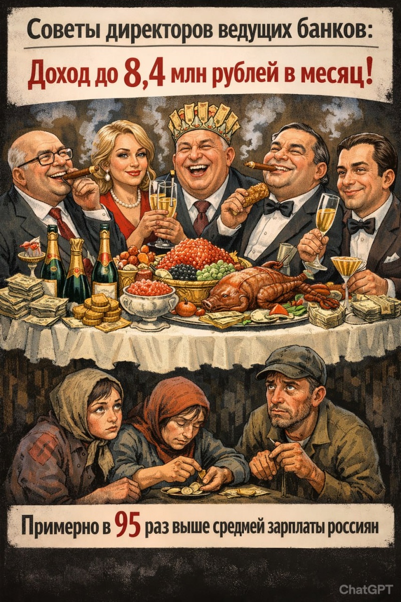 🔸Члены правления и совета директоров ведущих российских банков в период 2023–2025 годов ежемесячно зарабатывали до 8,4 млн рублей, что