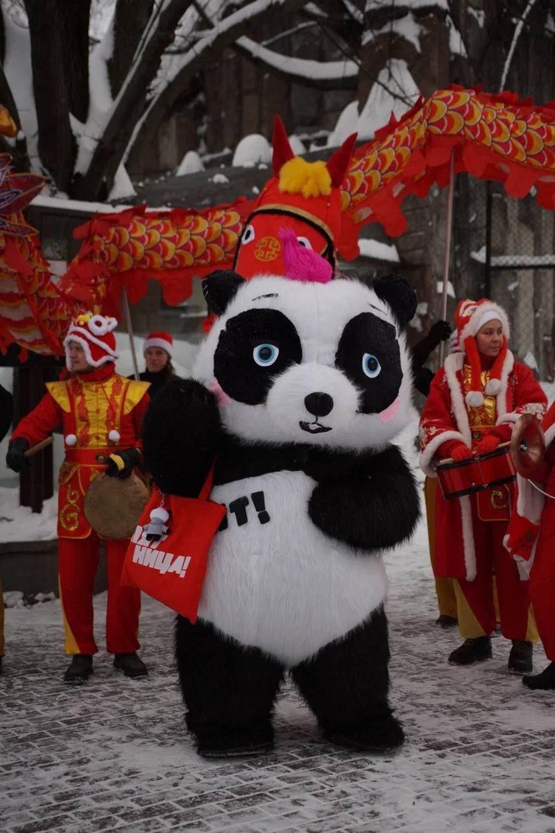 21 февраля телеканал «Пятница!» решил познакомить своего маскота Фрайди с живой пандой. Катюша бросила бамбук и подошла к стеклу, чтобы получше рассмотреть ее.