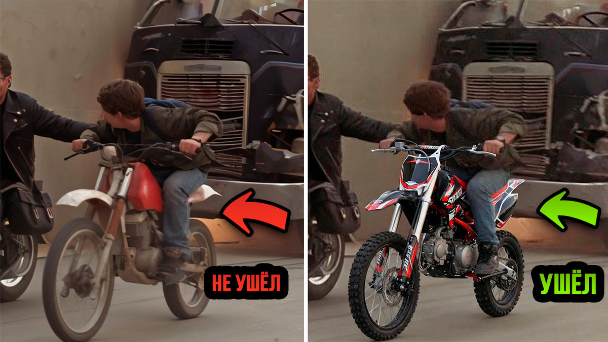 это длинная прямая бетонная труба. Особо не поманеврируешь. Именно поэтому Кэмерон всё снял правильно. T-800 на своём Harley-Davidson не просто «помог» он буквально спас Джона, пересадив к себе. Без Арн