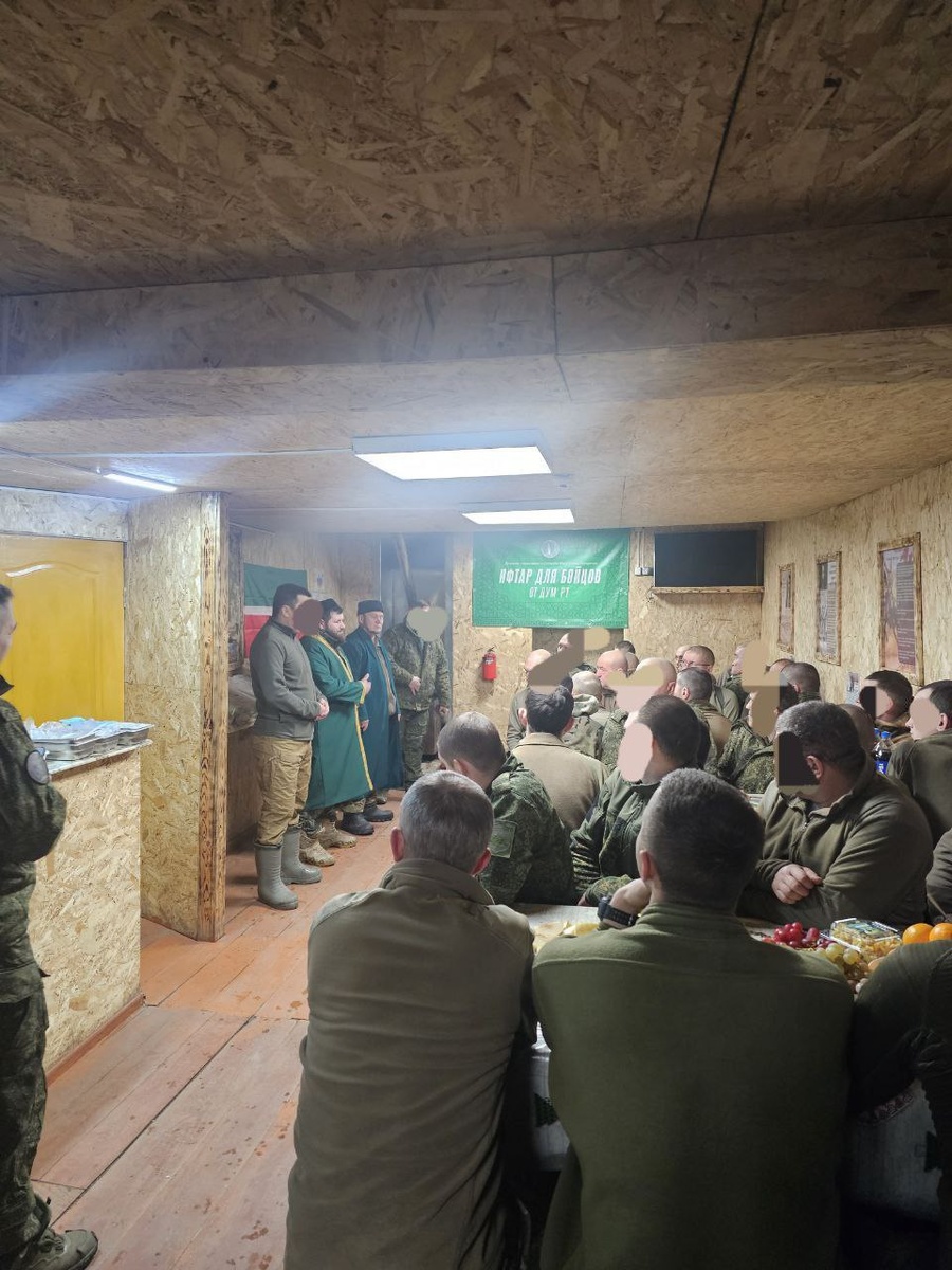🇷🇺☪️На линии боевого соприкосновения в зоне СВО тоже проходят ифтары 📿На фото - сегодняшний маджлис от ДУМ РТ для бойцов батальона "Батыр". Солдат от имени Муфтия Камиля хазрата поприветствовали казый ДУМ РТ Марат хазрат Марданшин и полковой имам ДУМ РТ Мухаммад хазрат Хайруллаев. Они поздравили их с наступающим Днем защитника Отечества и рассказали вагаз о достоинствах Рамадана. Марат хазрат пробудет с бойцами в течение Рамадана. 🤲Пусть Всевышний хранит наших защитников Родины и примет всех их дуа и гыйбадаты (поклонения) Если фото и видео в Телеграм долго загружаются, переходите в наш канал в МАХ