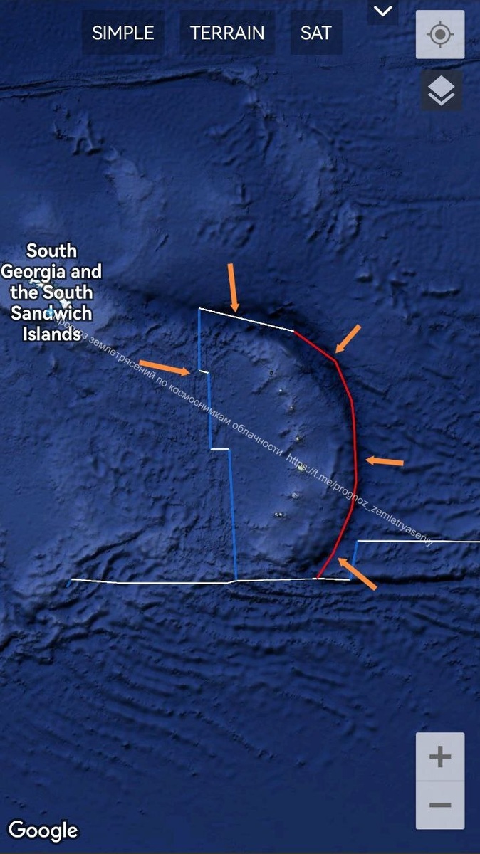 По Южным Сандвичевым островам в течение 9 дней есть вероятность землетрясения М6-7+