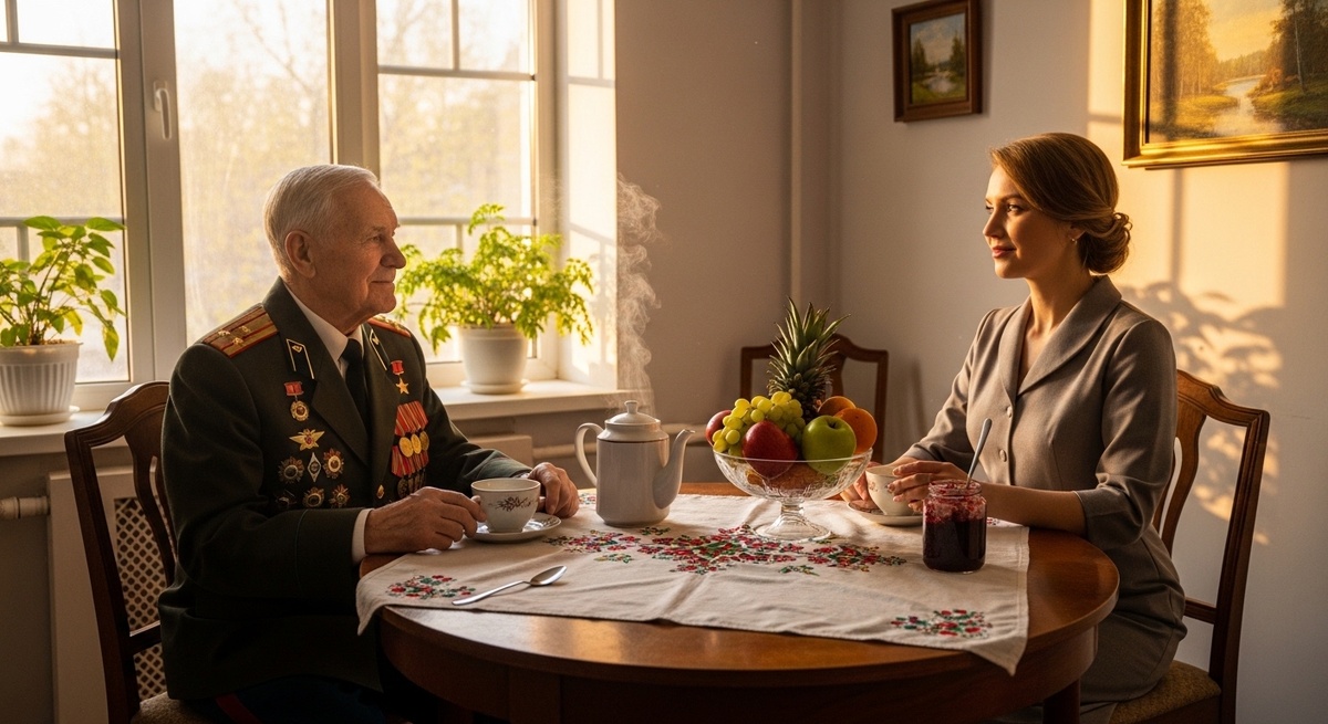 За окном падали последние листья. В столовой горел тёплый свет. На столе стояло варенье — то самое, которым он собирался угостить. И они сидели и пили чай — двое немолодых, одиноких, наконец-то нашедших друг друга людей.