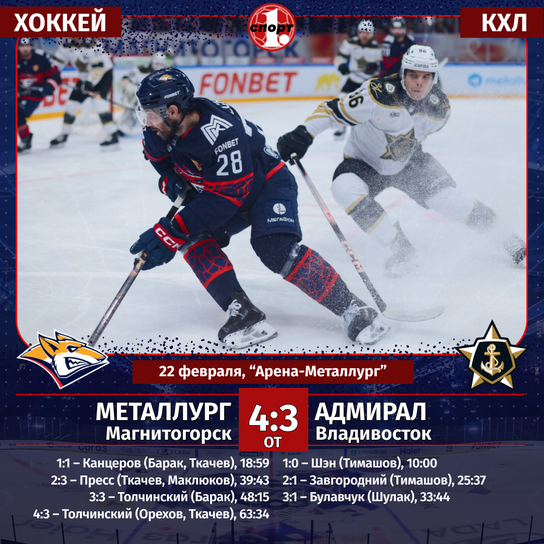 Сергей Толчинский помог «Металлургу» вырвать победу в овертайме у «Адмирала»