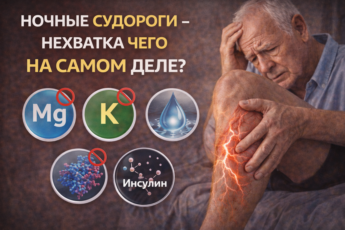 Его дефицит повышает возбудимость нервно-мышечных волокон. Проблема в том, что анализ крови часто показывает нормальный уровень, даже если в тканях его недостаточно. Организм поддерживает концентрацию в крови за счёт внутренних запасов. Но исследования показывают: при обычных ночных судорогах у людей без выраженного дефицита магний помог