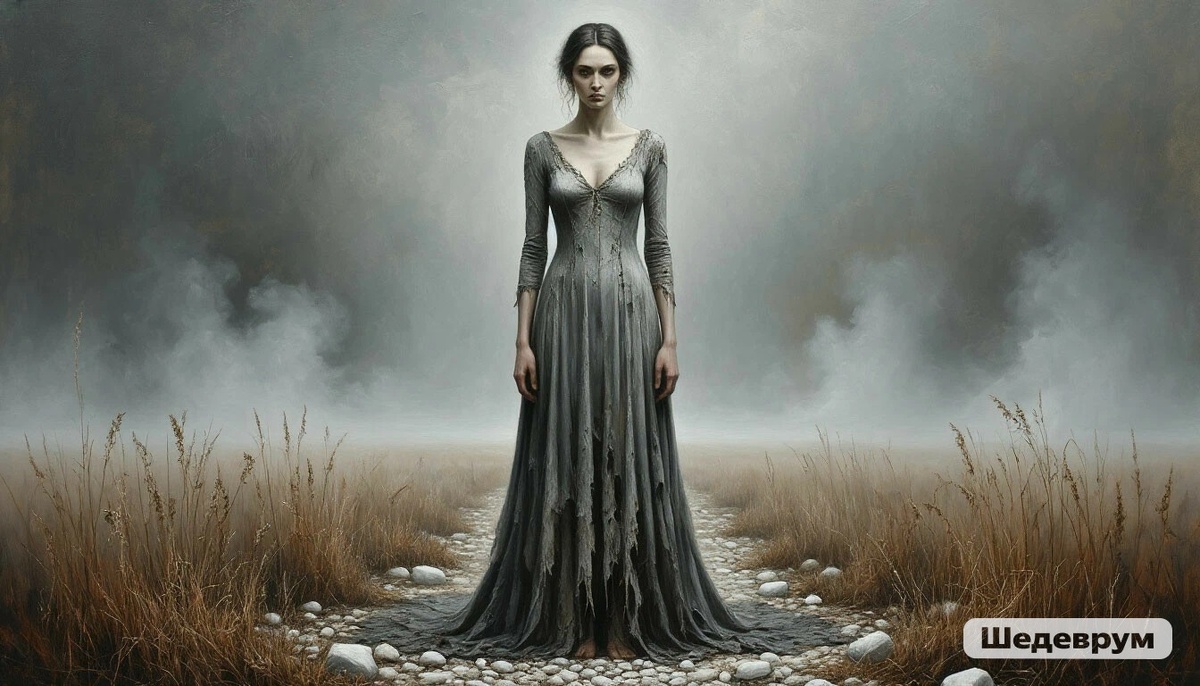Из белесой мглы вышла Женщина. Она была статной и высокой, с расправленными плечами, в которых чувствовалась сила гранитных скал. Её облик не имел возраста: в её осанке читалось достоинство королевы и смирение вдовы. Она остановилась в нескольких шагах, и её глаза, глубокие и холодные, как колодцы с мертвой водой, пригвоздили Максима к месту.