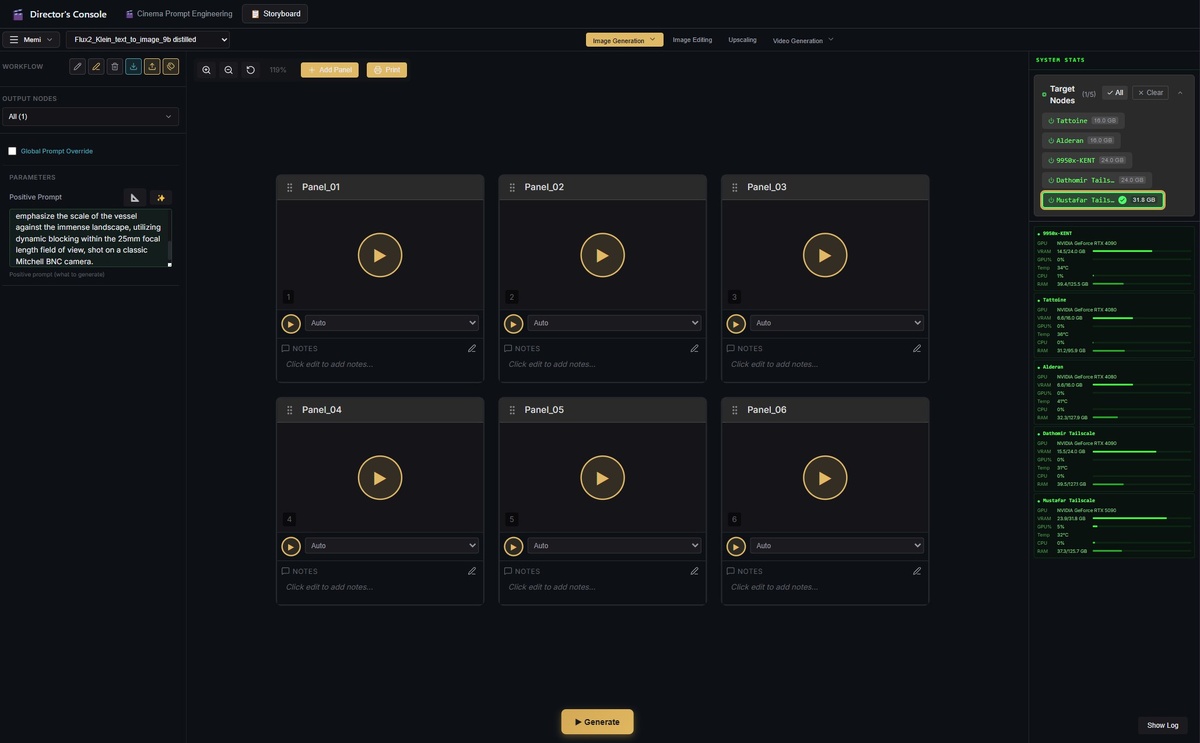 Director's Console — это платформа для управления проектами с поддержкой AI-генерации, интеграции LLM через Ollama и безопасного хранения медиа на NAS. Поддерживает drag-and-drop, синхронизацию между Storyboard и Gallery, а также автоматическое отключение узлов в ComfyUI при изменении параметров. Реализована система хранения метаданных в JSON шифрованием паролей и логированием через Loguru. Подходит для кинопроизводства и AI-работы с высокой точностью и контролем. ai-workflow, orchestration, ai-tools GitHub