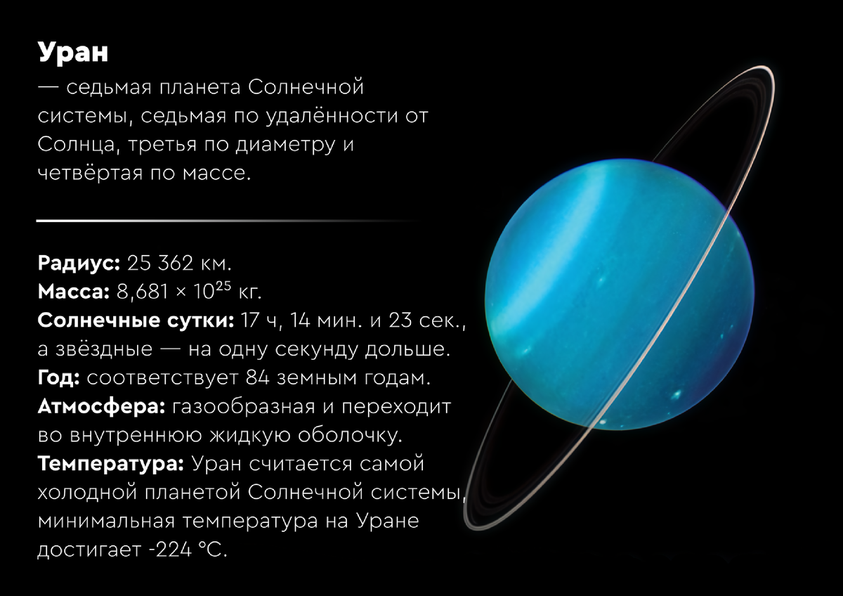 Знаете, в чем главная проблема Урана? В его скучной репутации. Подумайте сами: Меркурий — рекордсмен по скачкам температуры, Венеру мы окрестили злым, адским близнецом Земли, Марс манит красными пустошами, каналами и заливами, Юпитер хвастается своими гигантскими размерами, а Сатурн, конечно же, — бесспорный первый красавец со своими кольцами. А Уран? Просто какой-то бледно-голубой шарик, который «лежит на боку» и где вообще ничего не происходит. Так ведь?