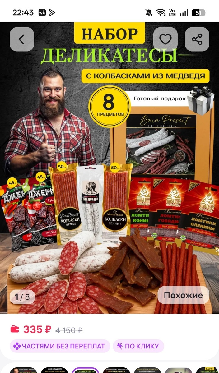 Подарок мужчине на 23 февраля с колбасками из медведя BonaPresent Бонапрезент