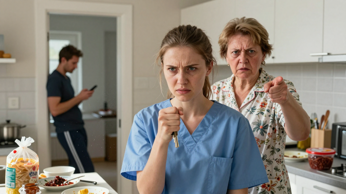 Лена молча расшнуровывала кроссовки. Спина после двенадцати часов на ногах в хирургическом отделении не просто болела — она горела огнём. Хотелось пить, хотелось тишины, хотелось просто вытянуть ноги. Но вместо этого она стояла в собственной прихожей и слушала очередной выпуск новостей о том, какая она никудышная хозяйка.