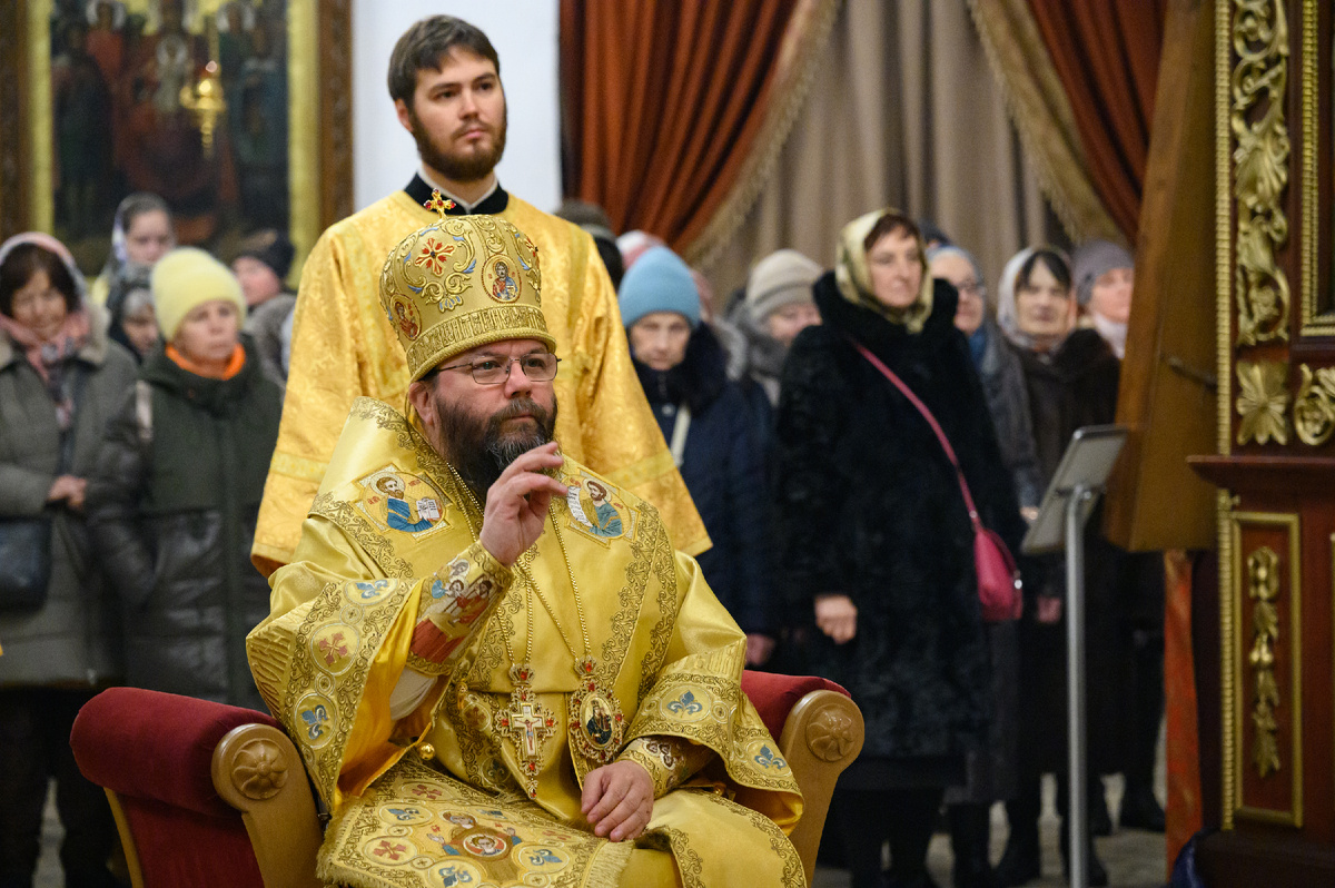 22 февраля 2026 года, в Неделю сыропустную, воспоминание Адамова изгнания, митрополит Псковский и Порховский Матфей совершил Божественную Литургию в Свято-Троицком кафедральном соборе города Пскова.