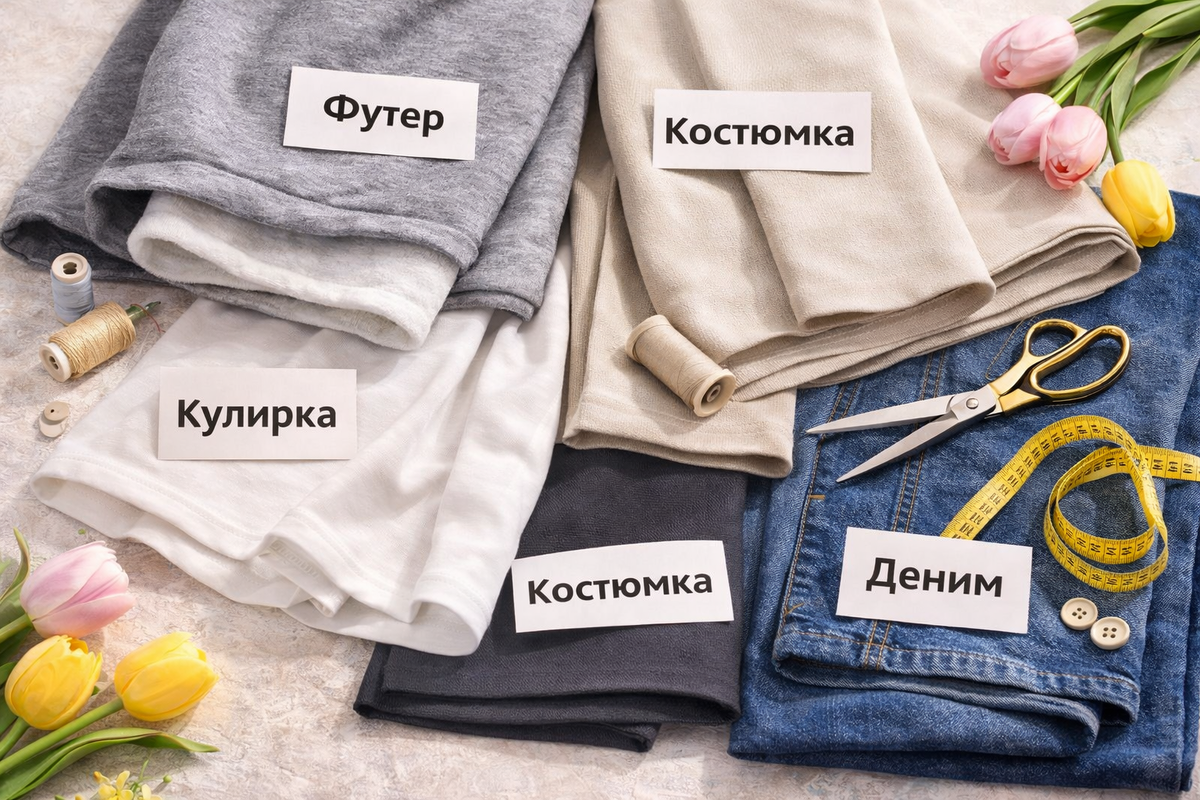 💛 Привет, швейные волшебницы! Март — переходный сезон: утром тепло, к обеду прохладно, вечером снова холодно. И что мы делаем? Открываем шкаф и думаем: «Нечего надеть!» 😅 Сегодня расскажу, какие 4 ткани помогут шить удобно и носить с удовольствием, чтобы вещи из вашей мини-капсулы сочетались и радовали каждый день. 1️⃣ Футер 2️⃣ Кулирка 3️⃣ Костюмка с эластаном 4️⃣ Деним (тонкий джинс) При выборе ткани учитывайте не только цвет и красоту: 💡 Попробуйте прямо сейчас: