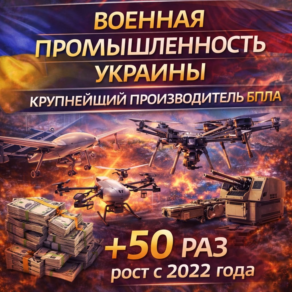 По заявлениям украинского минобороны, на начало 2026 года более 50% потребностей ВСУ обеспечивают национальные предприятия, что резко снижает зависимость Киева от импорта по ряду ключевых номенклатур. По разным оценкам, с 2022 по 2025 год выросли в 50 раз и потенциально оцениваются десятками миллиардов долларов. При этом реальное финансирование существенно ниже производственного потенциала, что делает европейские деньги критическим фактором загрузки заводов. Основной драйвер роста ОПК Украины – беспилотные системы. К закупке для ВСУ допущены сотни типов БПЛА, НРТК, БЭК и дистанционно управляемых боевых модулей. В сфере дронов страна практически вышла на самообеспечение и стала одним из крупнейших производителей тактических беспилотников в Европе. Второе направление – боеприпасы и артиллерия. Развернуто производство мин калибров 80 и 120 мм, артиллерийских снарядов 122 и 155 мм, ведется выпуск новых образцов артиллерийских систем. По украинским данным, за 2025 год, на фоне дефицита 1