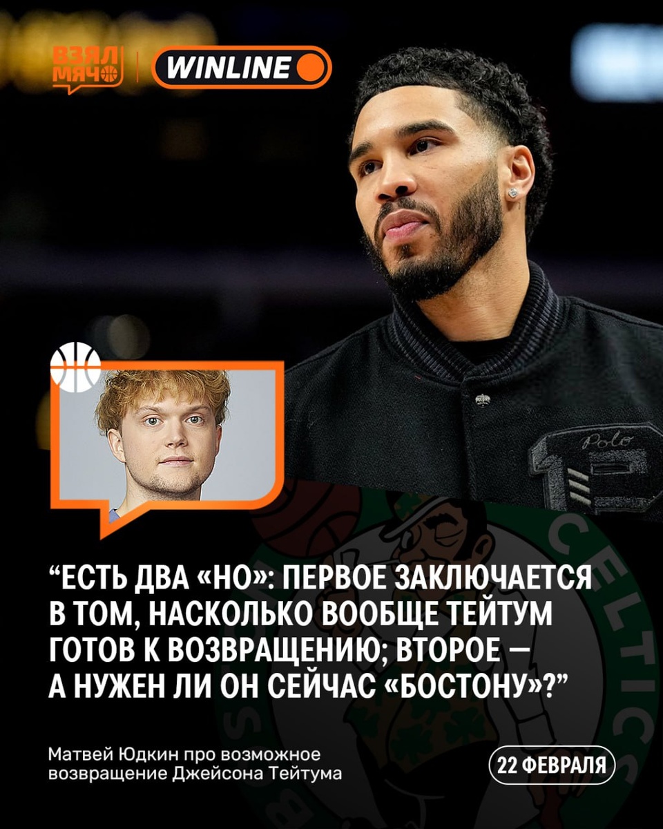 »? Тейтум уже тренируется с основной командой, и всё больше разговоров о его скором возвращении. На фоне того, что «Селтикс» удерживают вторую строчку на Востоке, тема звучит особенно громко. Матвей Юдкин рассказал о двух главных «но», которые сейчас нельзя игнорировать 👇 🗣 «Джейсон — огромный молодец. Восстановиться меньше чем за год после разрыва ахилла вызывает восхищение. Сейчас Тейтум уже тренируется с основной командой, и все СМИ трубят, что Джей Ти вот-вот вернётся на паркет полноценно. Особенно это любят обсуждать на фоне неожиданно удачных результатов „Бостона“, где ребята удерживают вторую строчку на Востоке. Правда, есть два „но“. Первое заключается в том, насколько вообще Тейтум готов к возвращению. Стоит ли торопиться? Разрыв ахилла — одна из самых серьёзных травм в баскетболе, после которой многие игроки заканчивали карьеры. А у вас есть шанс вылечить суперзвезду в прайме почти без последствий. Второе „но“ — а нужен ли такой Тейтум сейчас „Селтикс“? Когда он вернёт