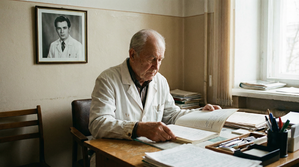 Ему шёл шестьдесят девятый год, но я этого тогда не знал. Видел только – немолодой мужчина с прямой спиной, в белом халате, застёгнутом на все пуговицы. Пальцы у него были длинные, сухие, суставы выступали заметно – но двигались точно, без лишнего усилия. Он что-то дописывал в карту предыдущего пациента и поднял голову не сразу.