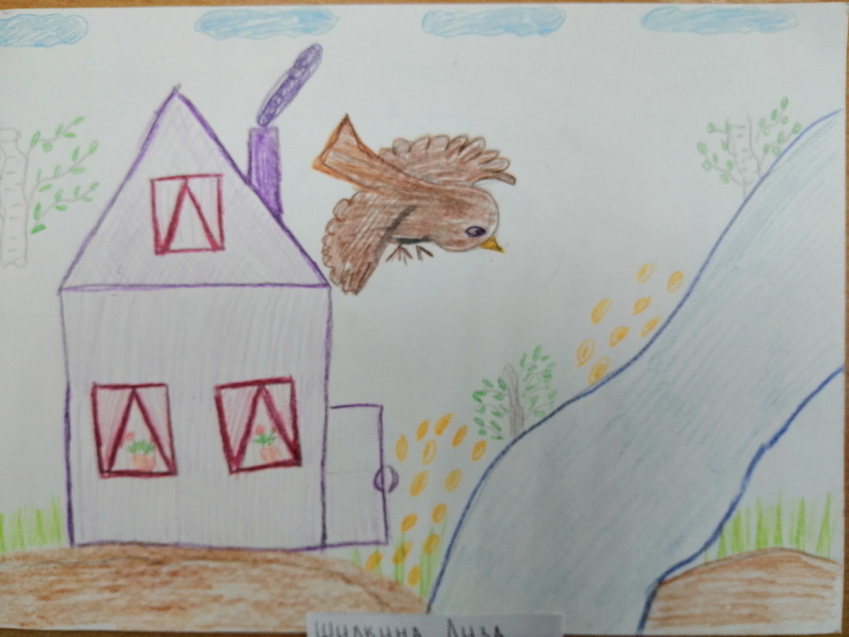 Описание: Я узнала о конкурсе от классного руководителя. В сентябре в нашей школе проходила литературно – музыкальная гостиная «Тихая моя родина» . Я рассказывала стихотворение Н.М.Рубцова «Воробей». Оно мне запомнилось, и я решила нарисовать воробья, которому так холодно и голодно зимой.