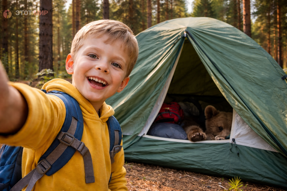 На этой фотографии всё ещё можно увидеть, как улыбается маленький Артём. Он стоит возле своей зелёной палатки, выпрямившись так гордо, будто уже покорил целый лес, и его глаза светятся уверенностью человека, который впервые чувствует себя самостоятельным. Если не знать, что произошло потом, снимок кажется обычным воспоминанием о счастливом детстве.
