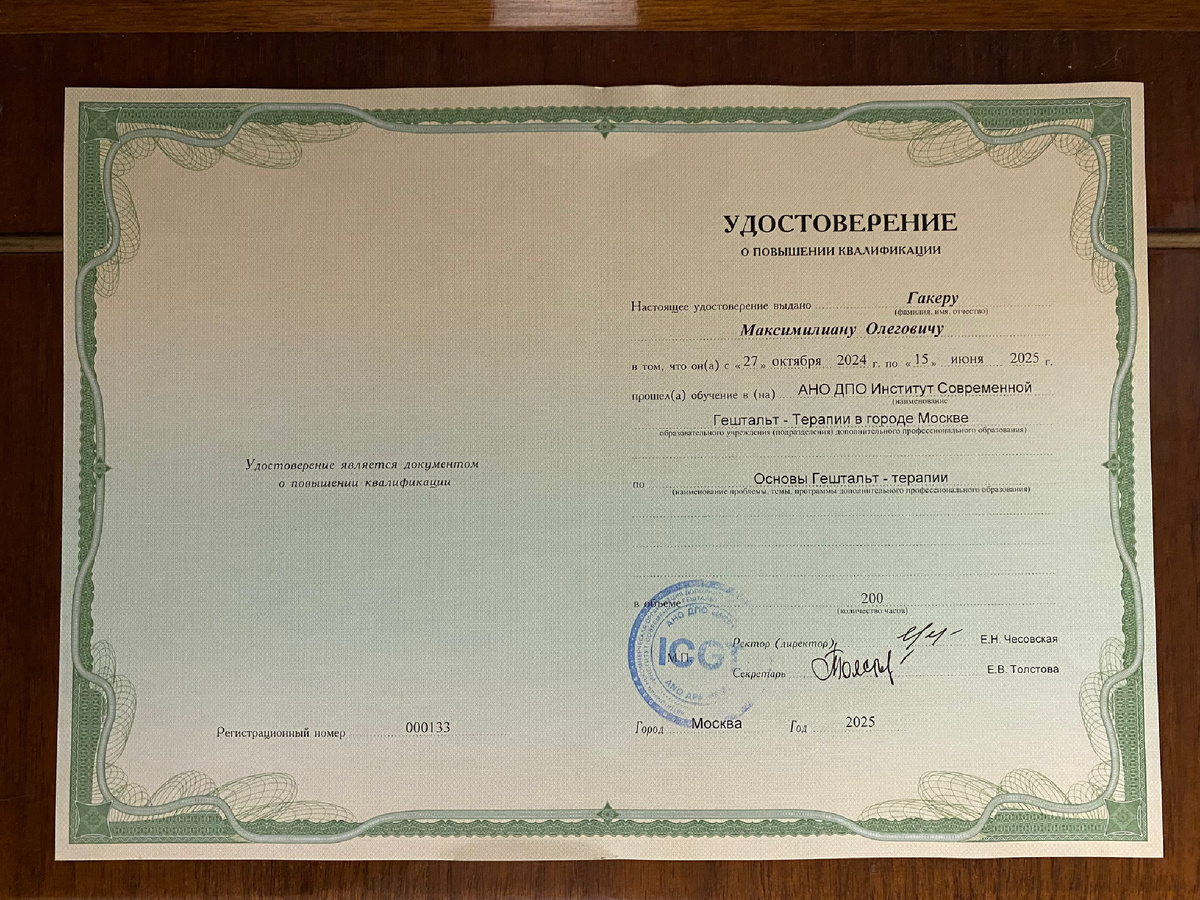 Летом 2025 года, 15 июня (люблю этот день) я завершил первую ступень гештальт-терапии. Первая ступень — это учебно-терапевтическая группа.