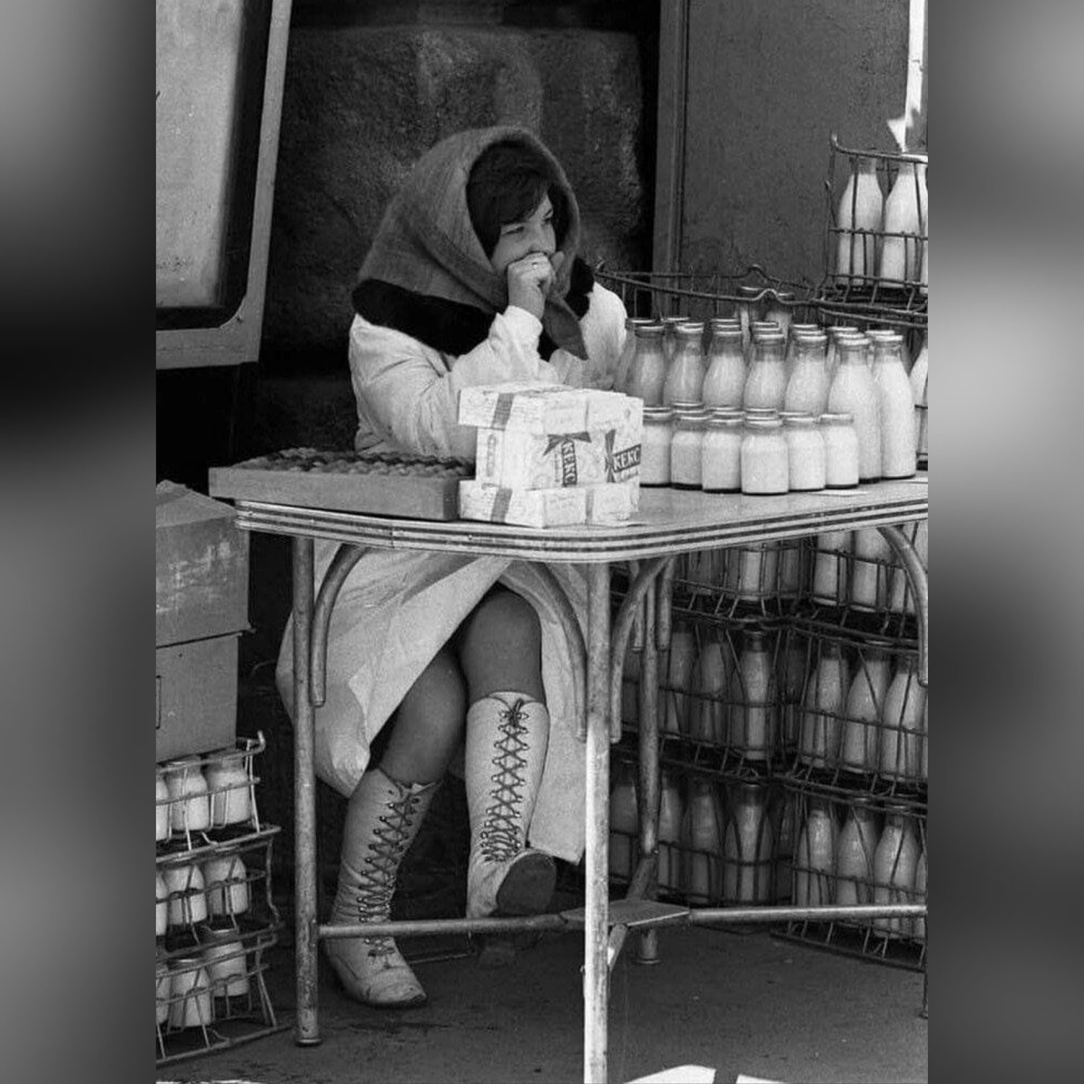 Самый простой способ понять, что нас так цепляет, — посмотреть на кадры из обычной работы. Например, продавщица молочного отдела в аккуратном фартуке (1970-е). Я почти слышу этот магазин: стеклянные витрины, звяканье бутылок, влажный холод от холодильника и короткое «вам сметану какой жирности?». На лице — минимум косметики, иногда вообще никакой. Зато есть взгляд «я здесь на месте». И улыбка, которая не изображает радость, а помогает жить день за днём.