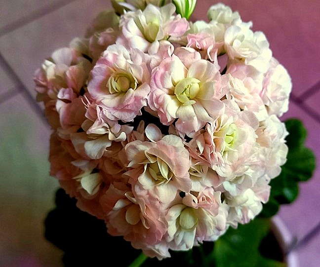 Каждый день меня встречает цветок, стоящий на одном из стеллажей, с тоской и всё-таки с надеждой глядящий в окно на затянувшуюся февральскую вьюгу. Этот цветок - коллекционная пеларгония Sutarves Nada K с лепестками, уложенными, как в настоящей розе. Выведена она в 2013 году в питомнике Sutarve мастером из Швеции и названа в честь Нади, сестры владельца питомника. Но это не просто розебудная пеларгония - это частичка скандинавской эстетики у меня дома. Каждый бутон - миниатюрное произведение искусства. Шапочки этих густомахровых плотно набитых цветков с изящно уложенными лепестками достигают в диаметре 6-7см. А представьте, что на цветоносе таких шапочек множество! Когда все они раскрываются, кажется, что на окне появляется нежный мини-розарий. Под лучами солнца на лепестках при их раскрытии проявляется нежное розовое напыление. И неожиданно в самом центре бутона появляется деликатный зеленоватый акцент, добавляющий цветку объём и глубину. При этом, сам куст не занимает много места -