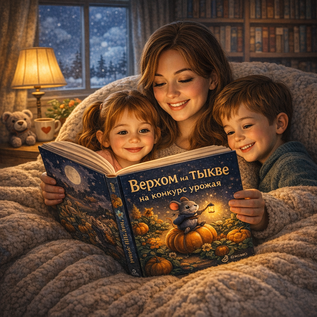 Я смотрю на это и чувствую огромную радость внутри. Очень жду того момента, когда он окончательно присоединится к нашим ночным чтениям. Ведь что может быть лучше, чем собираться вместе под одним пледом и отправляться в путешествие по страницам добрых книг? Например, верхом на тыкве.
